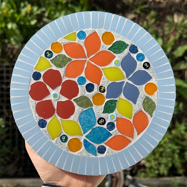Dessous-de-plat ou décoration murale. Mosaïque réalisée à la main sur support en bois (MDF) peint.
