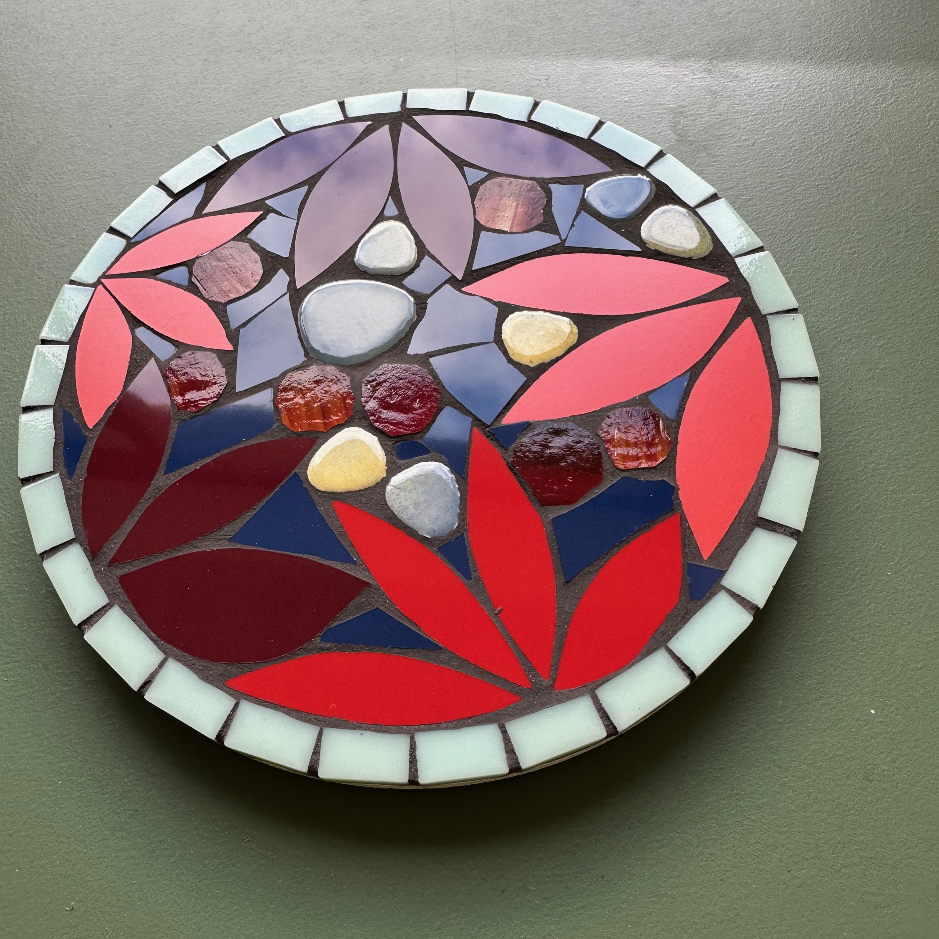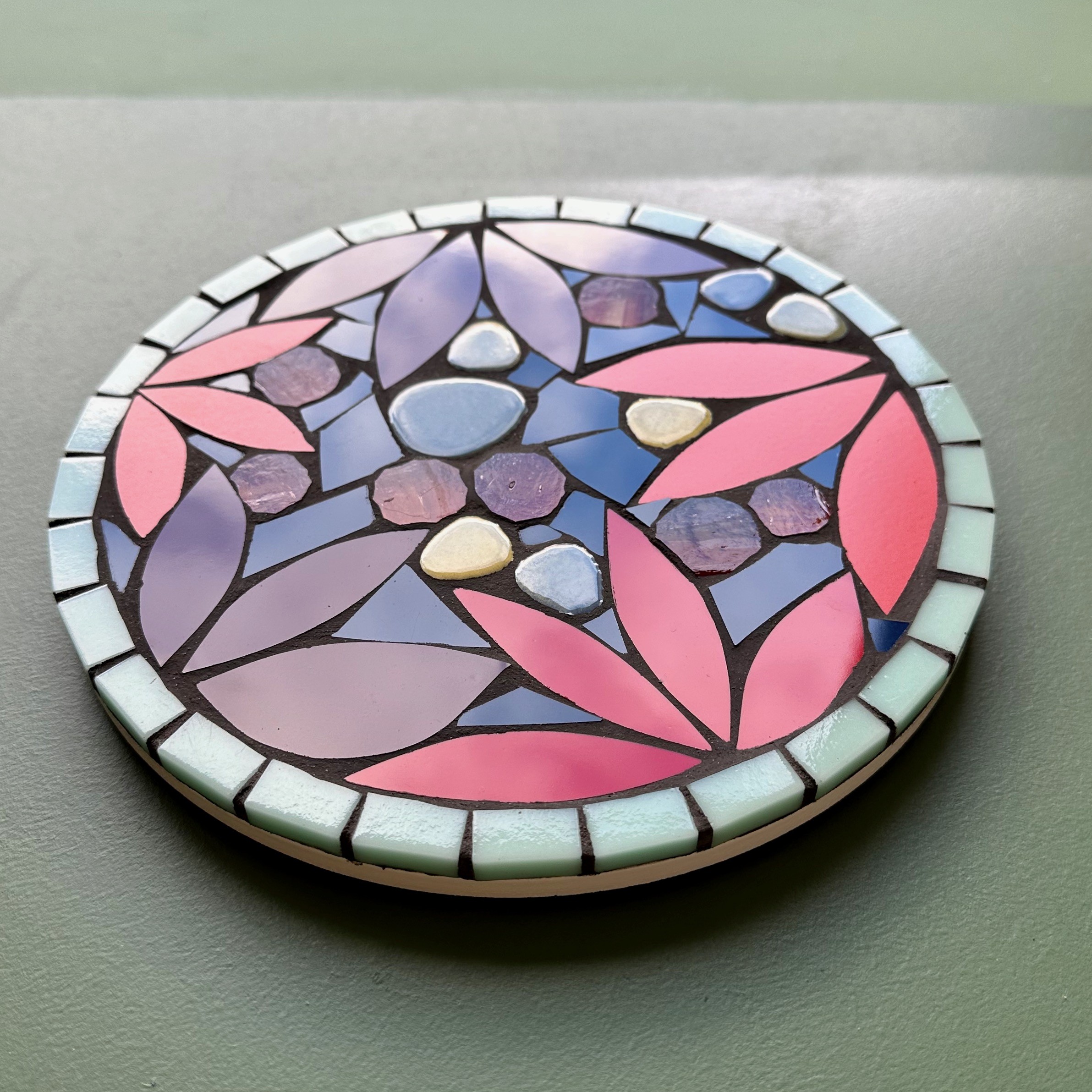 Le décor mosaïque est appliqué sur un support en bois (MDF) incassable, destiné à un usage de dessous-de-plat ou centre de table. Il peut aussi être posé sur une étagère comme décoration murale.