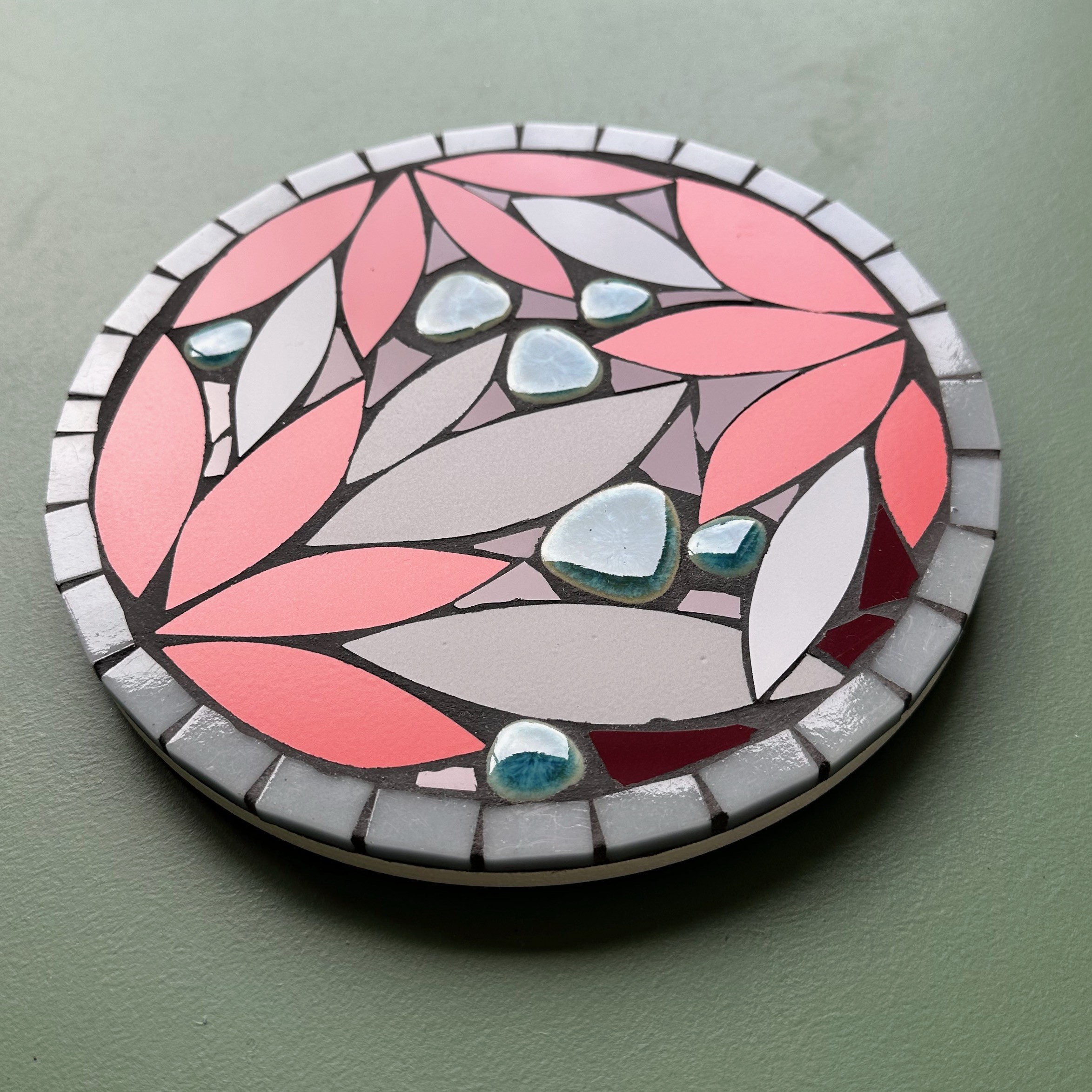 Le décor mosaïque est appliqué sur un support en bois (MDF) incassable, destiné à un usage de dessous-de-plat ou centre de table. Il peut aussi être posé sur une étagère comme décoration murale.