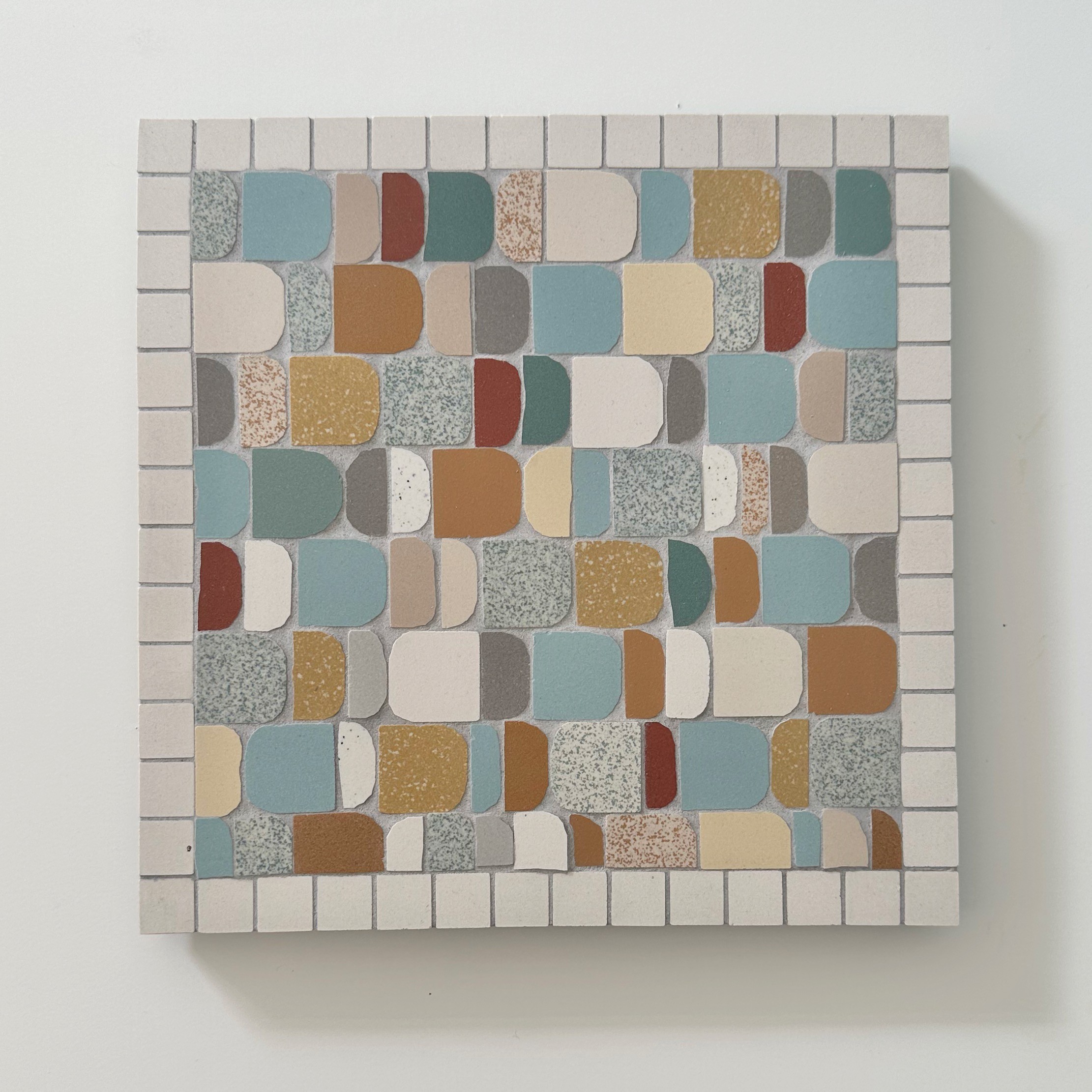Dessous-de-plat ou décoration murale. Mosaïque réalisée à la main sur support en bois (MDF) peint. Mosaïque de grès cérame et émaux de verre de Venise à la feuille d'or, taillés à la main