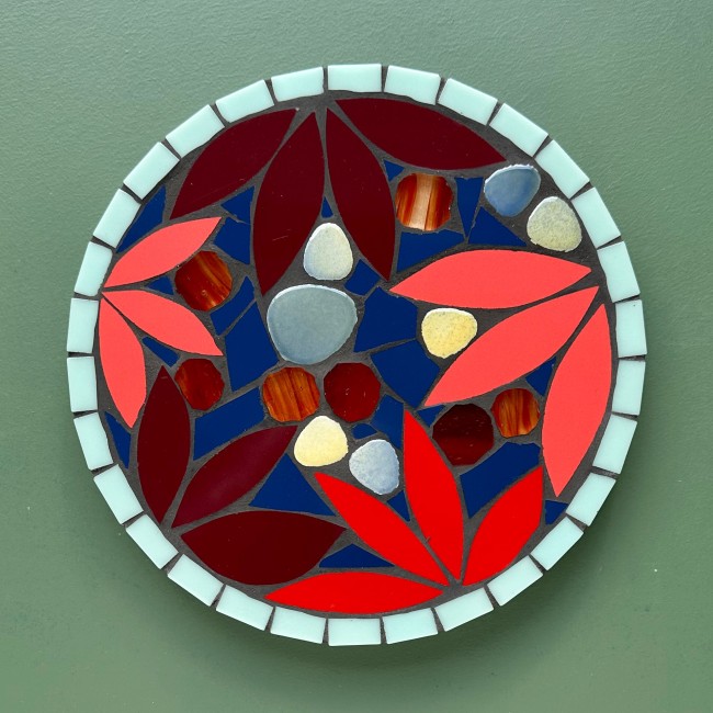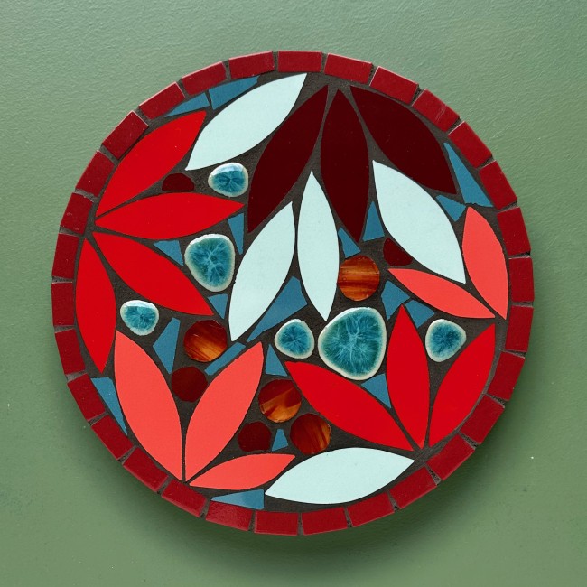 Dessous-de-plat Magnolia rouge garance et bleu paon